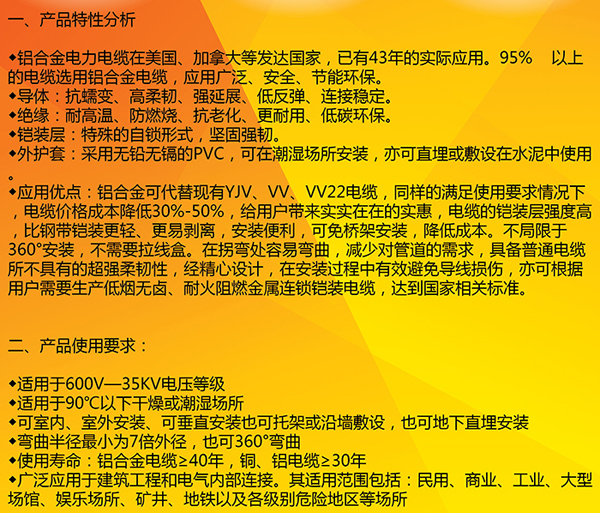 鋁合金電纜:鋁合金電纜ZR-YJLHV 瀏覽:3668